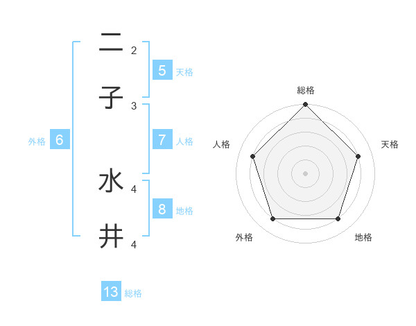 二子 水井さんの総格は13画の5点!