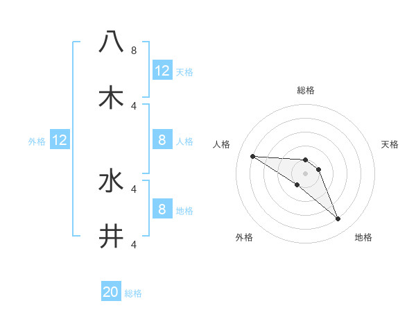八木 水井さんの地格は8画の4点!