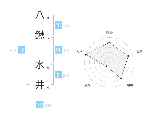 八鍬 水井さんの総格は33画の4点!
