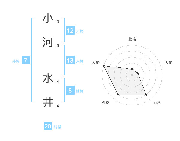 小河 水井さんの総格は20画の1点!
