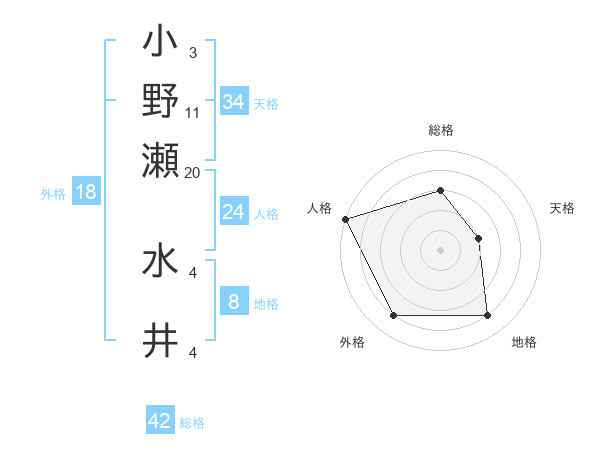 小野瀬 水井さんを姓名の画数から五運を鑑定