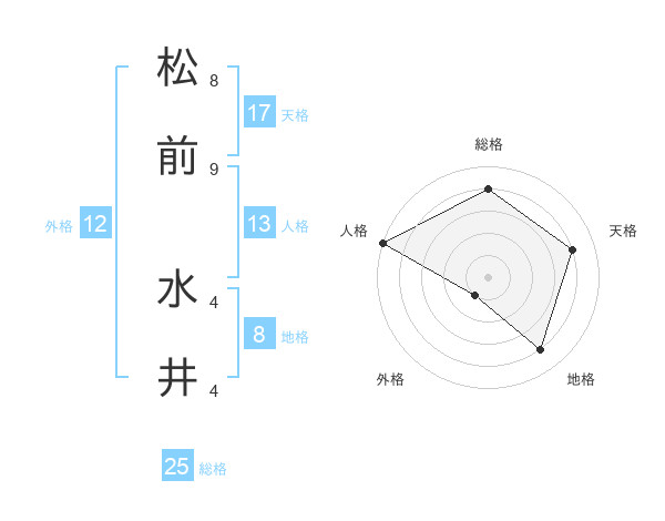 松前 水井さんの総格は25画の4点!