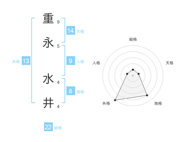 重永 水井さんの総格は22画の1点!