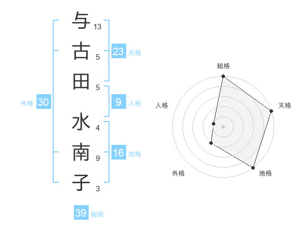 与古田 水南子さんを姓名の画数から五運を鑑定