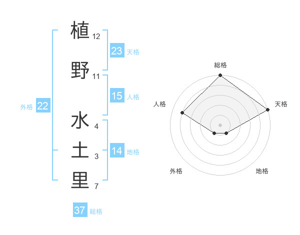 植野 水土里さんの総格は37画の5点!