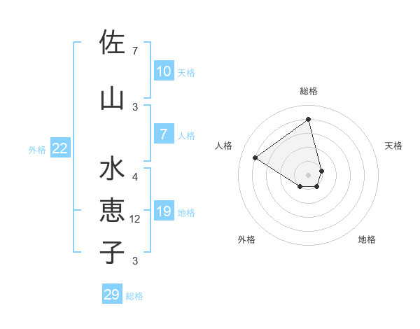 佐山 水恵子さんを姓名の画数から五運を鑑定