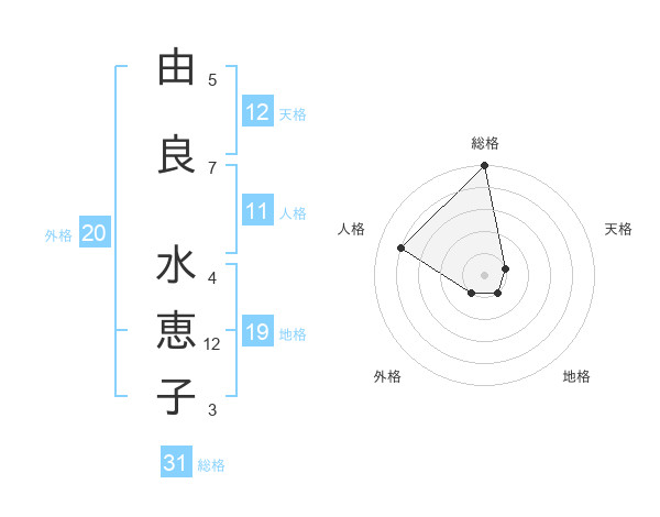 由良 水恵子さんを姓名の画数から五運を鑑定