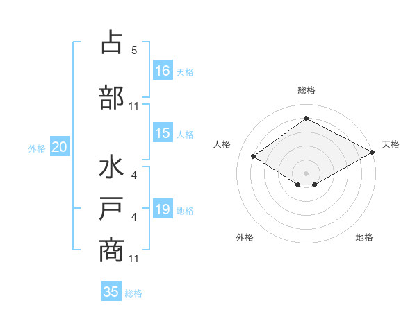 占部 水戸商さんを姓名の画数から五運を鑑定