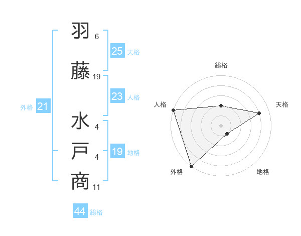 羽藤 水戸商さんの地格は19画の1点!
