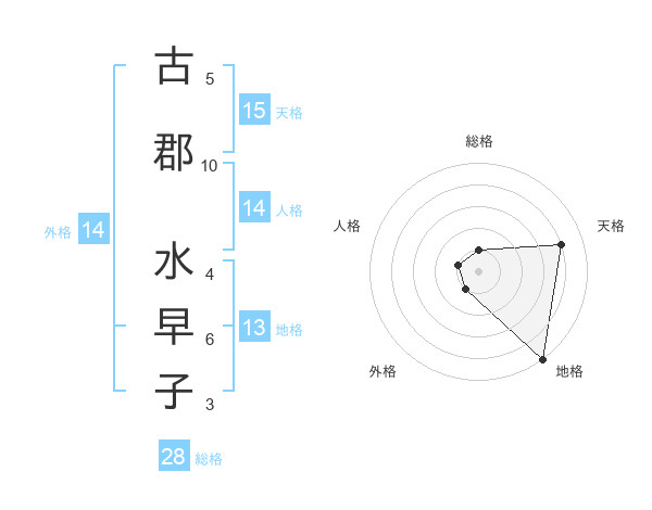古郡 水早子さんの総格は28画の1点!