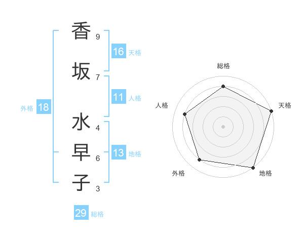 香坂 水早子さんの総格は29画の4点!