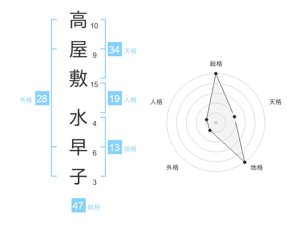 高屋敷 水早子さんの総格は47画の5点!
