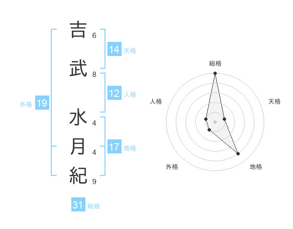 吉武 水月紀さんの総格は31画の5点!