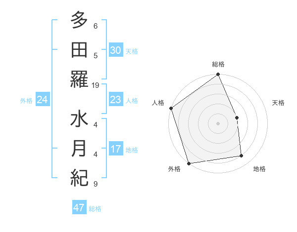 多田羅 水月紀さんを姓名の画数から五運を鑑定