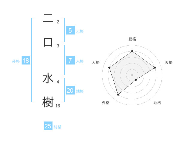 二口 水樹さんの総格は25画の4点!