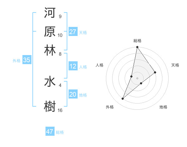 河原林 水樹さんを姓名の画数から五運を鑑定
