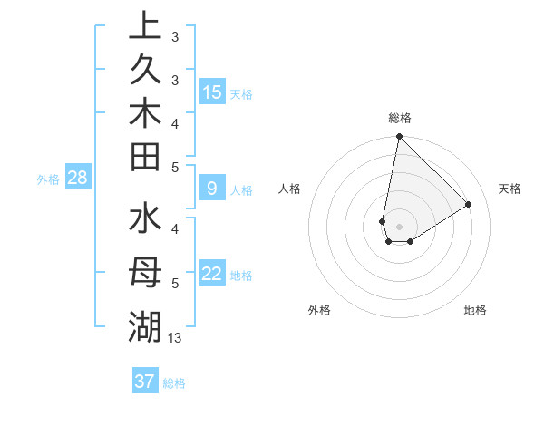 上久木田 水母湖さんの総格は37画の5点