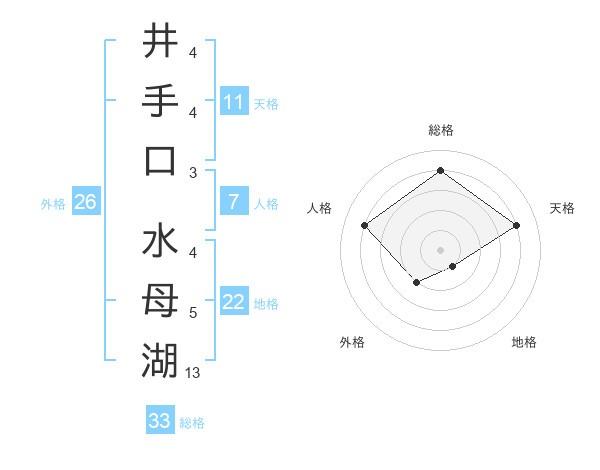 井手口 水母湖さんを姓名の画数から五運を鑑定