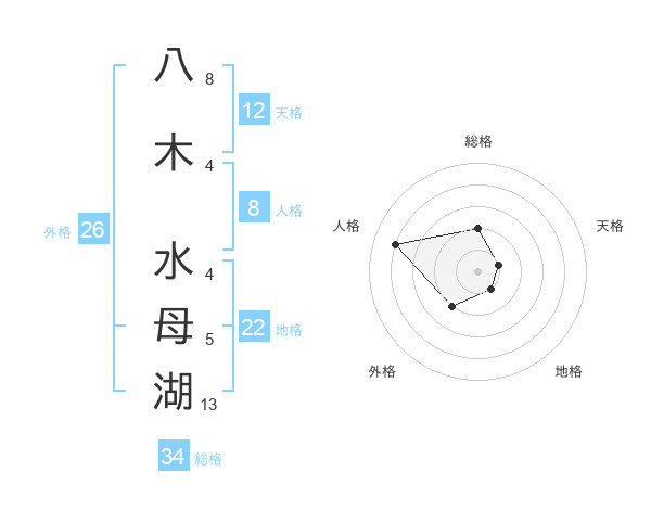 八木 水母湖さんを姓名の画数から五運を鑑定