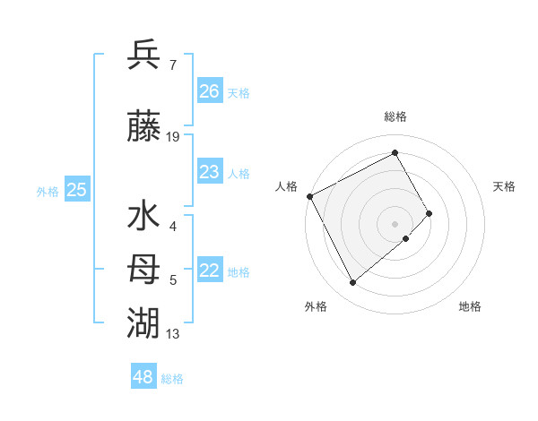 兵藤 水母湖さんを姓名の画数から五運を鑑定