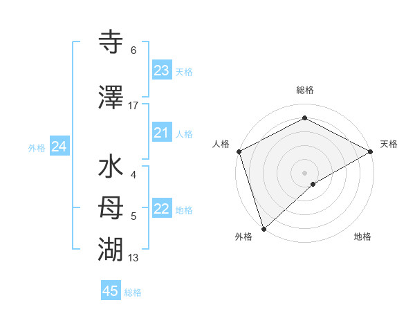 寺澤 水母湖さんを姓名の画数から五運を鑑定