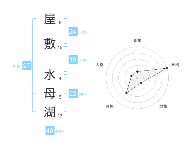 屋敷 水母湖さんを姓名の画数から五運を鑑定