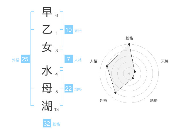 早乙女 水母湖さんを姓名の画数から五運を鑑定