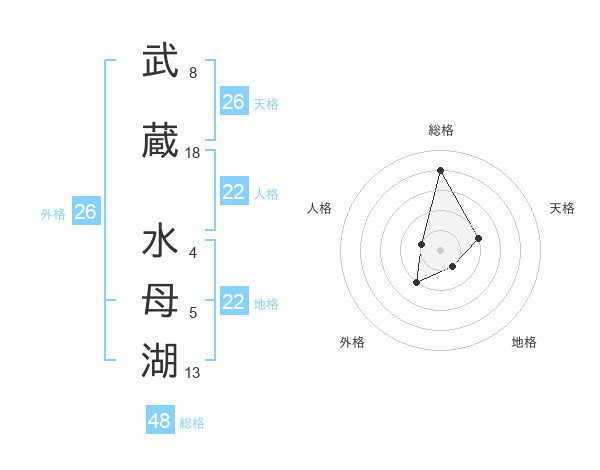 武蔵 水母湖さんを姓名の画数から五運を鑑定