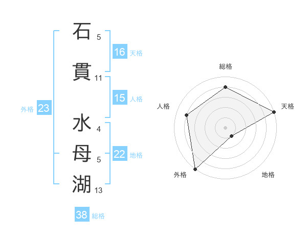 石貫 水母湖さんを姓名の画数から五運を鑑定