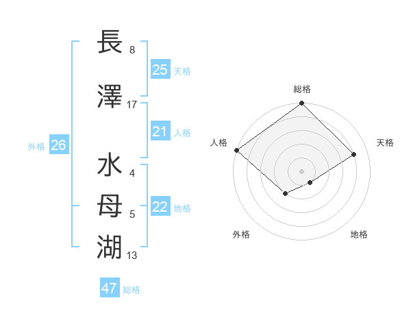長澤 水母湖さんを姓名の画数から五運を鑑定