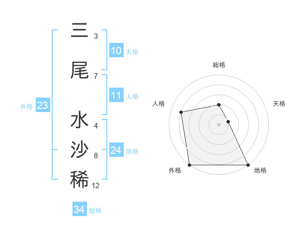 三尾 水沙稀さんの総格は34画の2点!