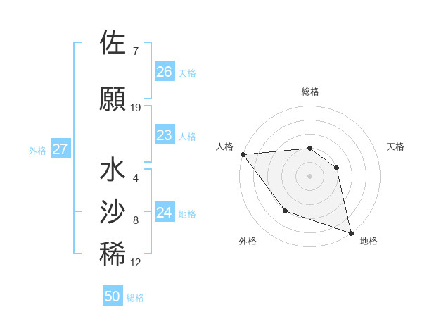 佐願 水沙稀さんを姓名の画数から五運を鑑定