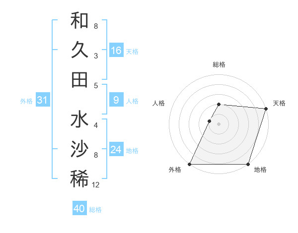 和久田 水沙稀さんを姓名の画数から五運を鑑定