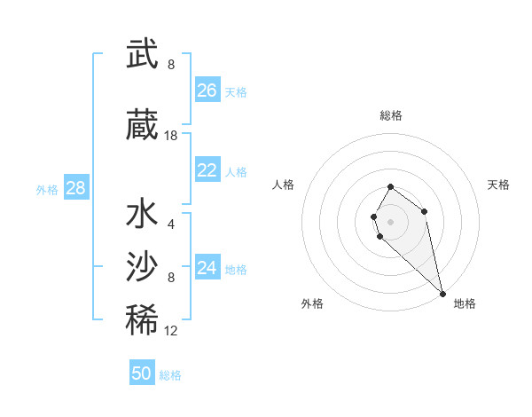 武蔵 水沙稀さんを姓名の画数から五運を鑑定