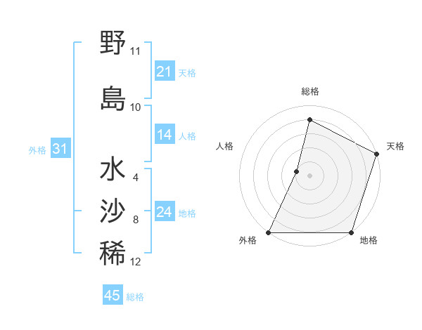 野島 水沙稀さんを姓名の画数から五運を鑑定