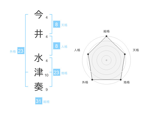 今井 水津奏さんを姓名の画数から五運を鑑定
