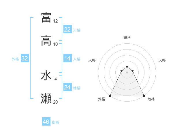 富高 水瀬さんの外格は32画の5点!