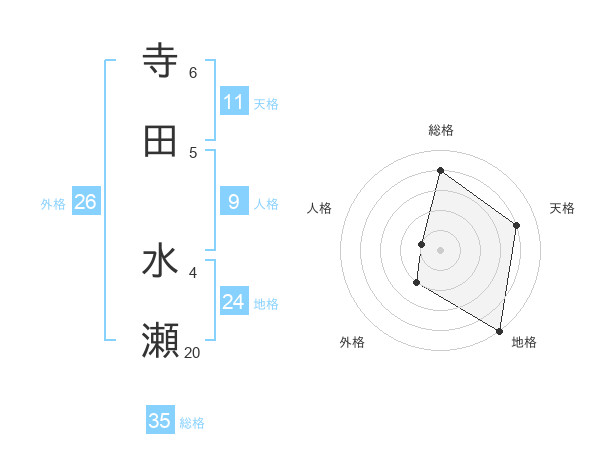 寺田 水瀬さんを姓名の画数から五運を鑑定