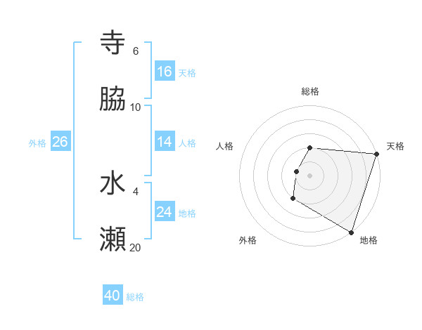 寺脇 水瀬さんの総格は40画の2点!