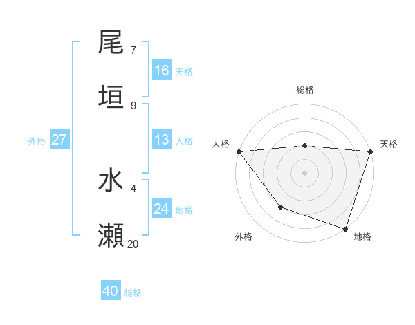 尾垣 水瀬さんを姓名の画数から五運を鑑定