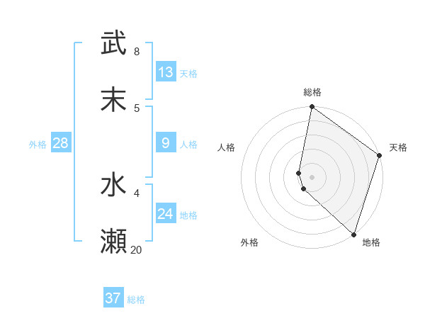武末 水瀬さんを姓名の画数から五運を鑑定