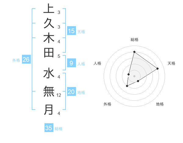上久木田 水無月さんを姓名の画数から五運を鑑定