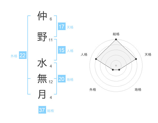 仲野 水無月さんの外格は22画の1点!