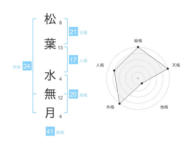 松葉 水無月さんを姓名の画数から五運を鑑定