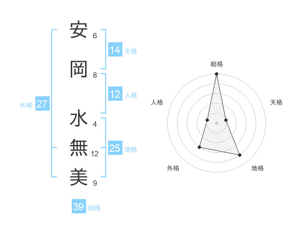 安岡 水無美さんを姓名の画数から五運を鑑定