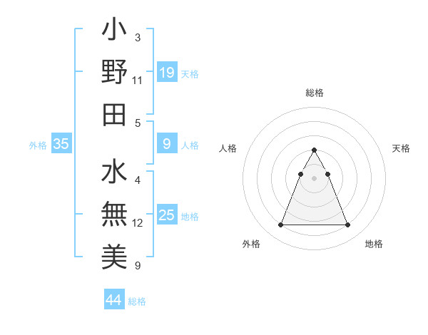 小野田 水無美さんの総格は44画の2点!
