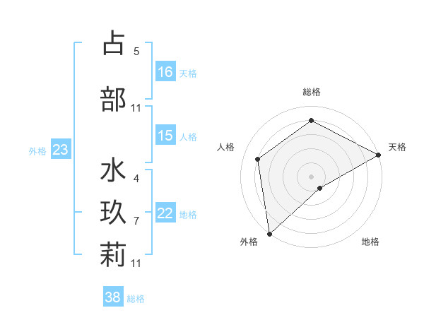 占部 水玖莉さんの総格は38画の4点!