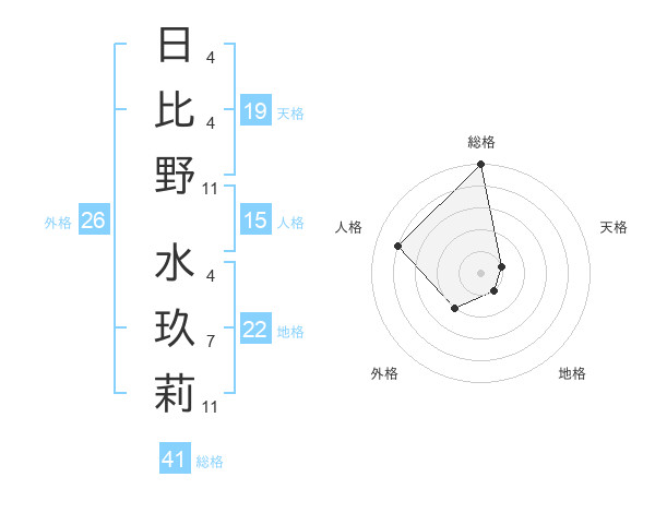 日比野 水玖莉さんを姓名の画数から五運を鑑定