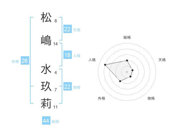 松嶋 水玖莉さんを姓名の画数から五運を鑑定