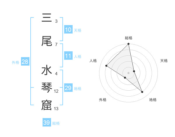 三尾 水琴窟さんを姓名の画数から五運を鑑定